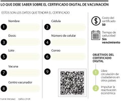Colombia lanzó certificado digital de vacunación contra el COVID-19 Detallaron que permite acreditar que la persona ya ha recibido una o dos dosis de la vacuna es digital pero descargable en formato PDF gratuito y podrá ser emitido en idioma inglés o español. La estrategia de vacunación en Sucre fue denominada Si le pongo el brazo. Sin embargo el Ministerio de Salud señaló que este certificado fue elaborado en plena observancia de las recomendaciones tecnicas emitidas por la Organización Mundial de la Salud para su proximo reconocimiento internacional.